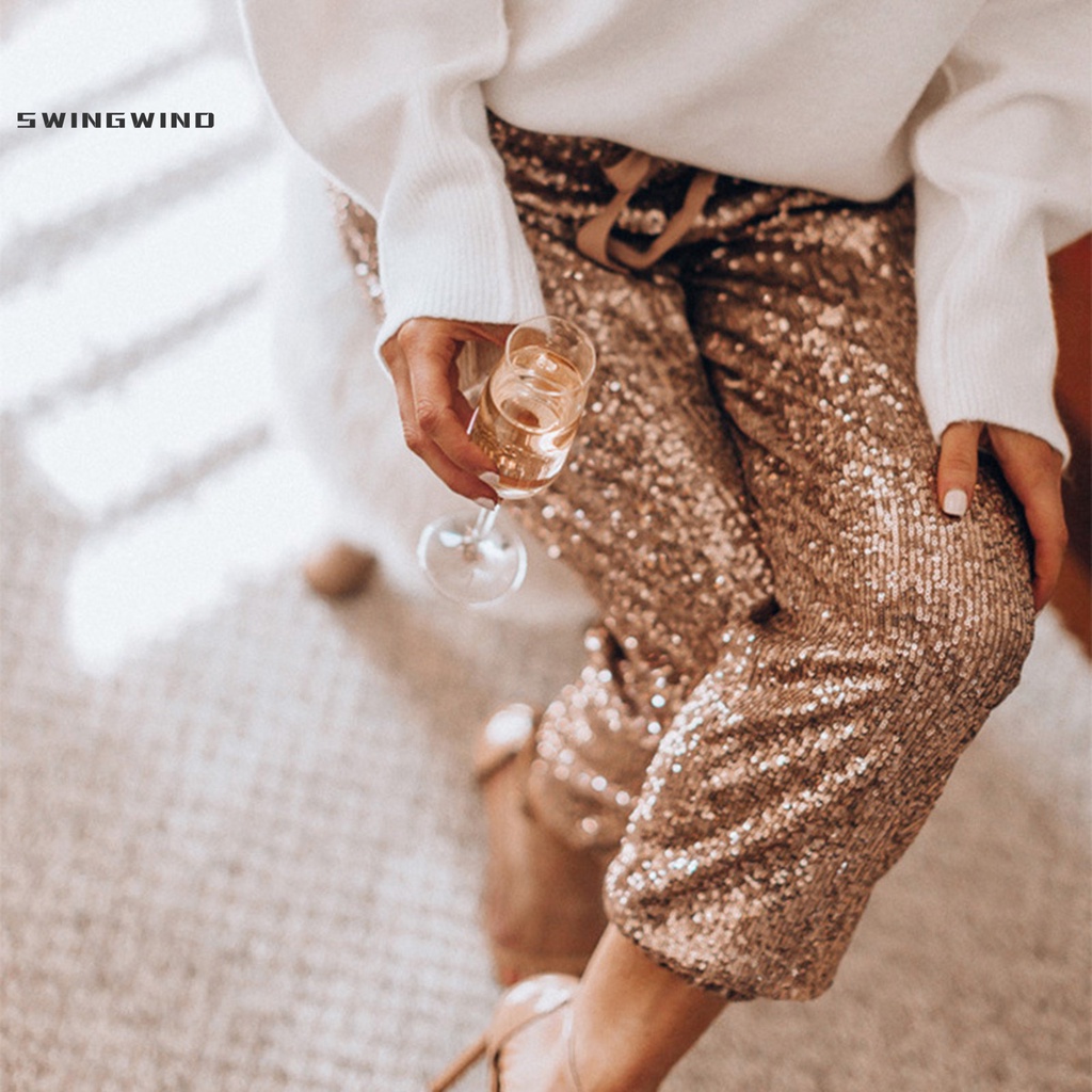 Rose gold sequin joggers. Womens Black Sequin Bling Legging Joggers Pencil Pants with Drawstring. FREE Shipping by Amazon. The waist is fitted by an elastic waistband that provides up to 7 additional stretch.